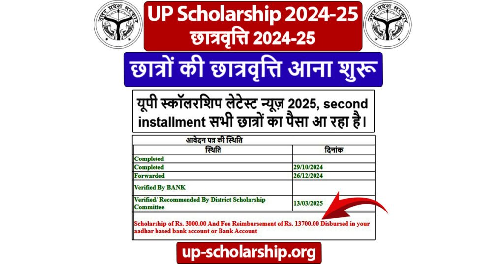 यूपी स्कॉलरशिप लेटेस्ट न्यूज़ 2025, second installment सभी छात्रों का पैसा आ रहा है।