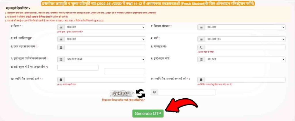 जैसे ही आप लोग UP Scholarship के Registration वाले Page पर Redirect हो जाएंगे, तो आपके सामने पहले जिला District चूज करने का Option दिखेगा, तो आप जिला District अपना चूज कर लेने के किस जिले में आप लोग पढ़ाई करते हैं। उसके बाद आपको शिक्षण संस्थान चूज करना होगा, उसके बाद आप लोग अपना नाम डालेंगे जो कि आपका Marksheet में लिखा हुआ है, सेम टू से डालिएगा, उसके बाद आप लोग किस जाति से Belong करते हैं।