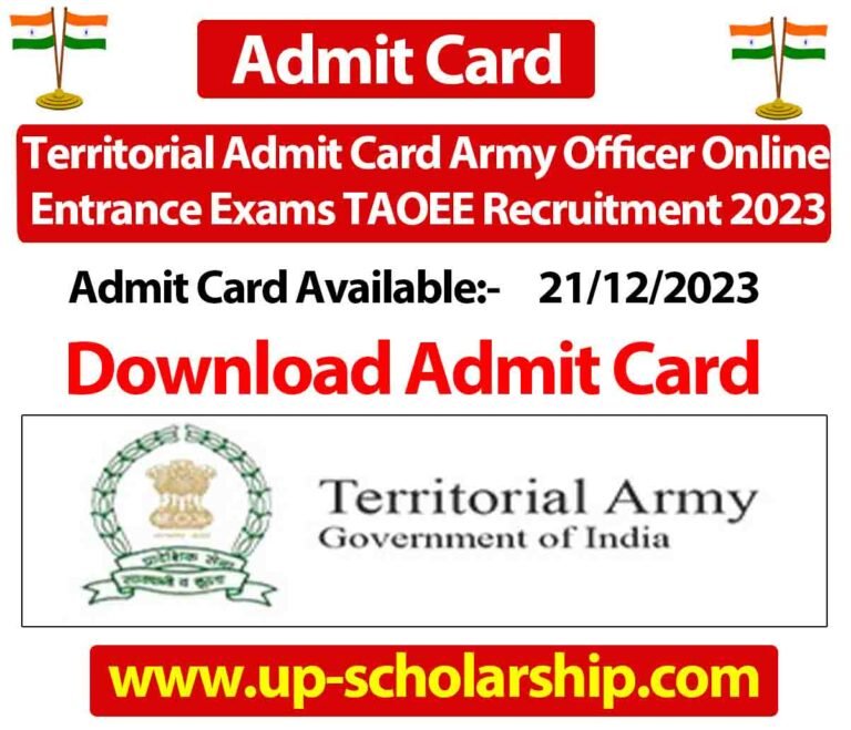 Join Territorial Army ने Territorial Admit Card Army Officer Online Entrance Exams TAOEE Recruitment की भर्ती निकली थी, जिसका Admit card अभी आ गया है, जो लोग Territorial Admit Card Army Officer Online Entrance Exams TAOEE में अपना फॉर्म अप्लाई किया था, अप्लाई करने का Date (23 अक्टूबर 2023 से लेकर के 21 नवंबर 2023 तक) था, और जिन अभ्यर्थियों ने Territorial Admit Card Army Officer Online Entrance Exams TAOEE का एग्जाम दिया था, उन सभी अभ्यर्थियों का Admit card आ गया है, आज हम आप लोगों को बताएंगे कि किस तरीके से आप अपना Admit card Download कर पाएंगे।